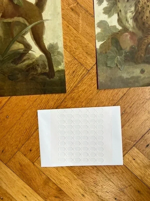 Eenvoudig monteren met onze flexibele plakdots (niet meegeleverd). Deze transparante kleefovalen maken het mogelijk om de kunst kaarten stevig en onzichtbaar op vrijwel elke ondergrond te bevestigen – zonder dat je hoeft te boren of spijkeren. Zo blijven je muren onbeschadigd en kun je de kaarten gemakkelijk verwisselen of verplaatsen.